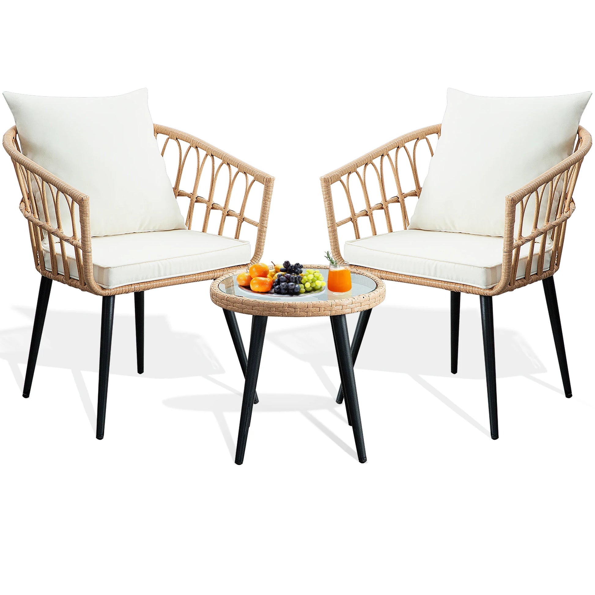 Seogwisam 3 Piece Patio Wicker Outdoor Set With Cushions For Two Chairs And Table