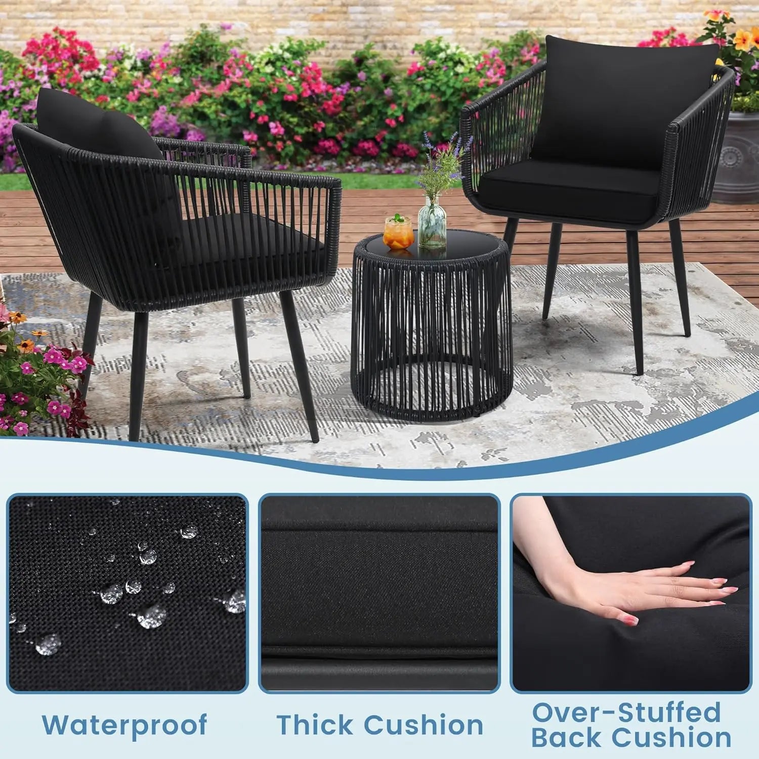 Experience outdoor dining and lounging with the XMSJ 3 Piece Patio Rattan Bistro Set — a perfect fusion of style, comfort, and all-weather durability.