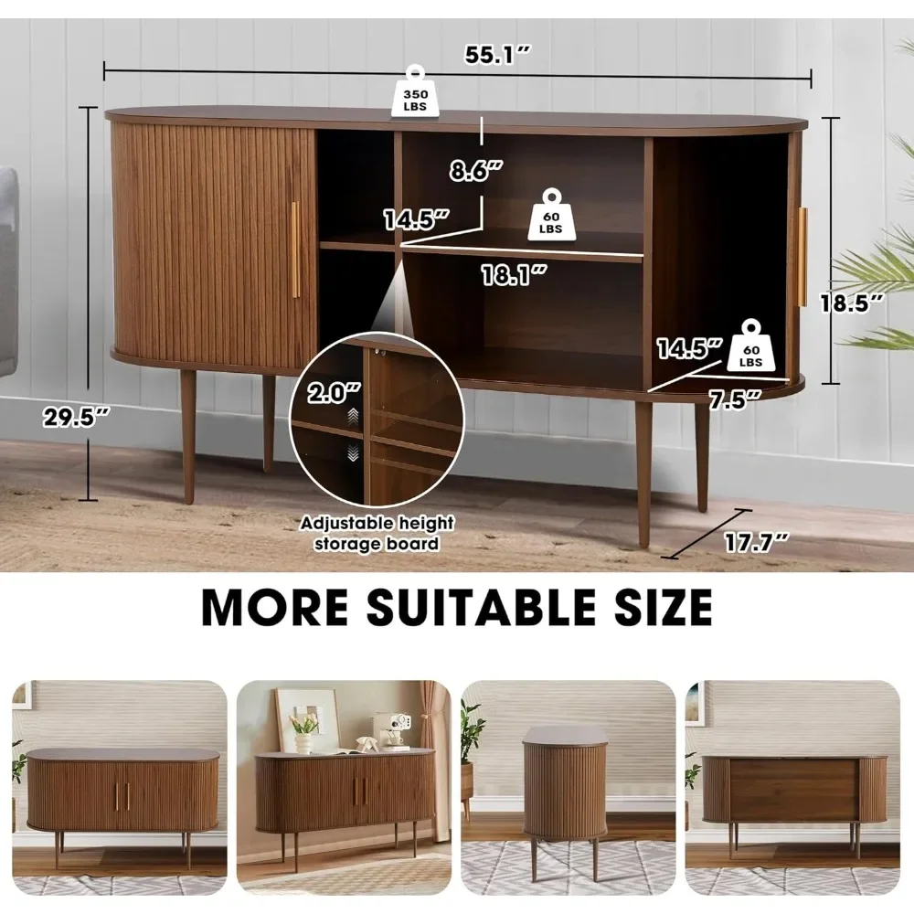ZUIYU Modern Sideboard Buffet With Tambour Doors Shelves