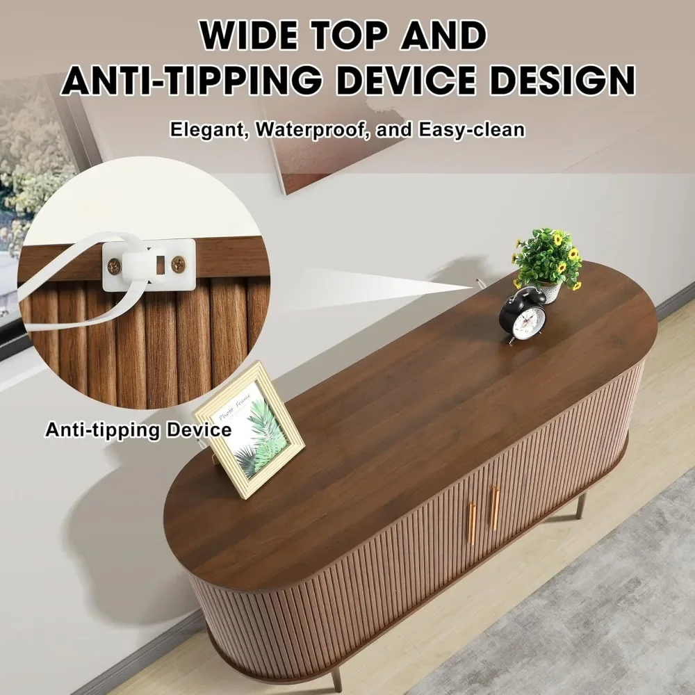 Transform your living space with ZUIYU's Modern Sideboard Buffet with Tambour Doors Shelves, a stylish storage solution designed to keep essentials organized and accessible.