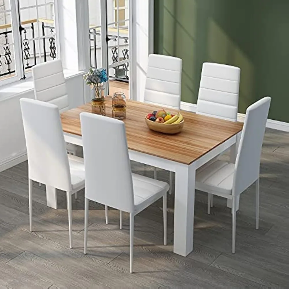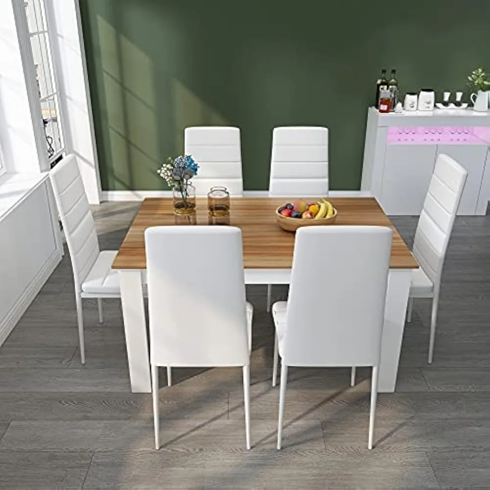 Elevate your dining space with Mondeer’s 6- to 7-piece Dining Table and Chairs Set, a modern rectangular ensemble that combines refined faux leather seating with a sturdy, stylish table for everyday meals and gatherings.