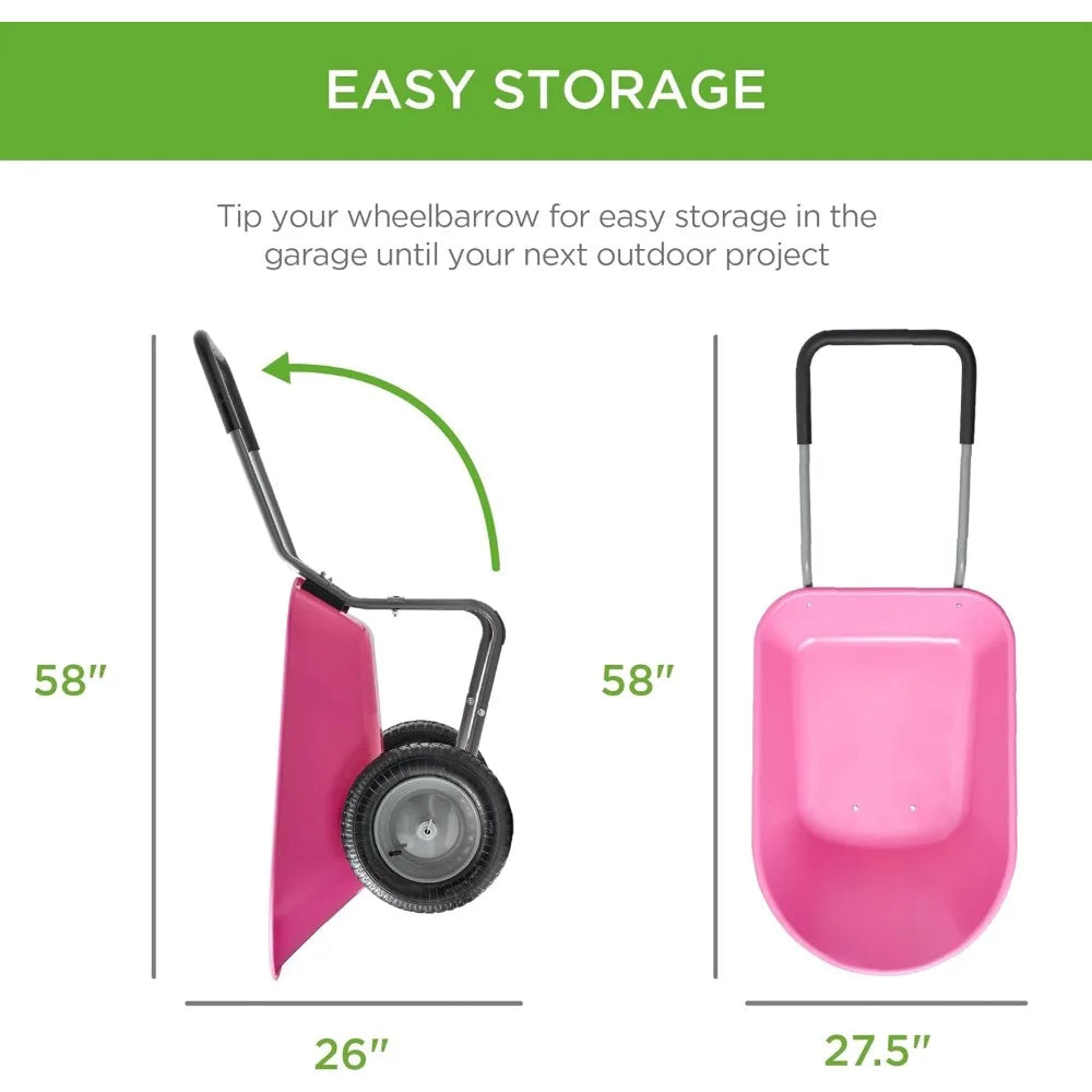 The dual‑wheel design distributes weight for smoother, less strenuous material transport. The built‑in stand stabilizes the cart during loading, unloading, and cleanup, helping you stay organized between tasks. Whether you’re tackling a garden project, landscaping, or routine yard maintenance, this wheelbarrow cart makes moving heavy loads easier and safer.
