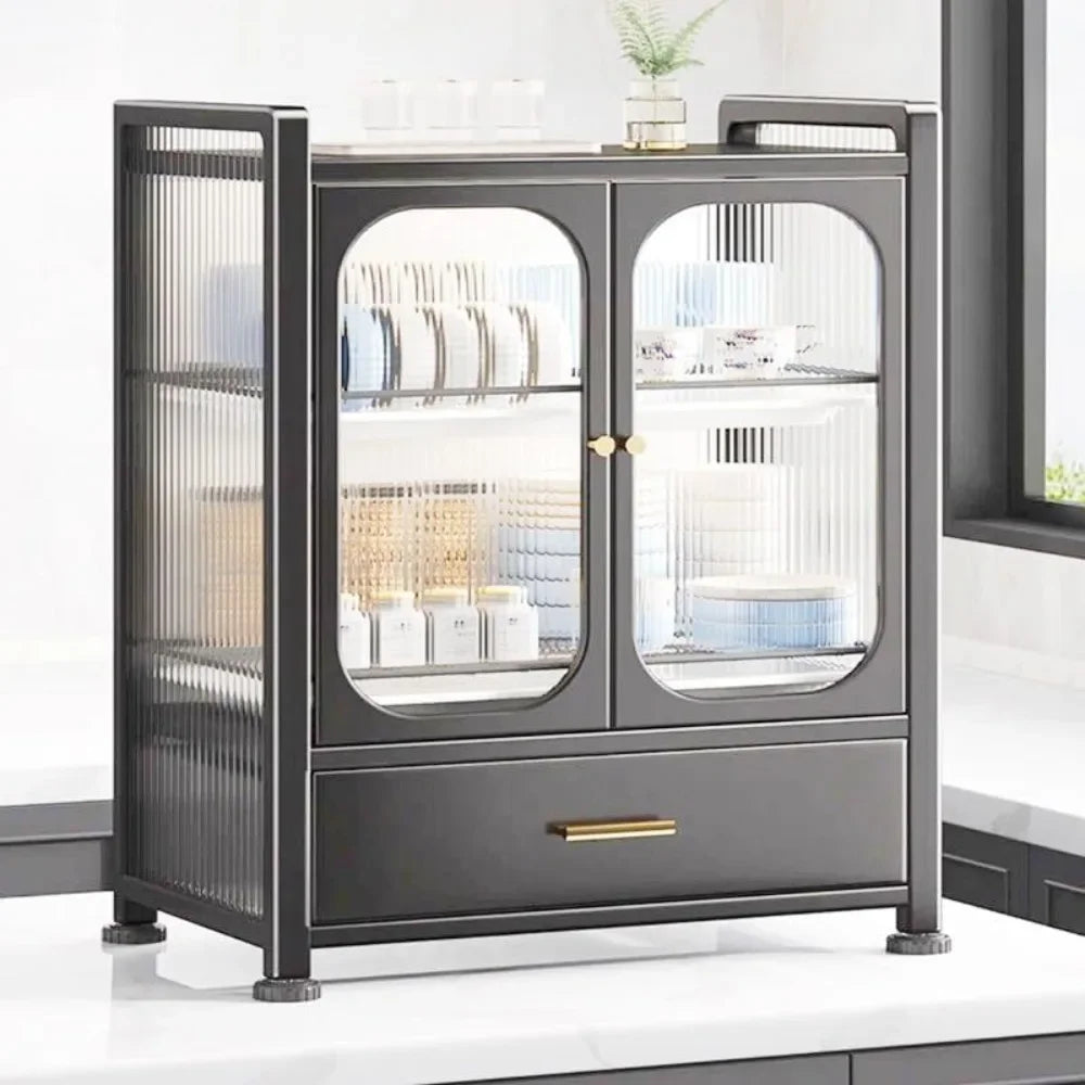 - Three-tier, space-saving design: organizes plates, bowls, and utensils with a practical lower shelf for larger items.
