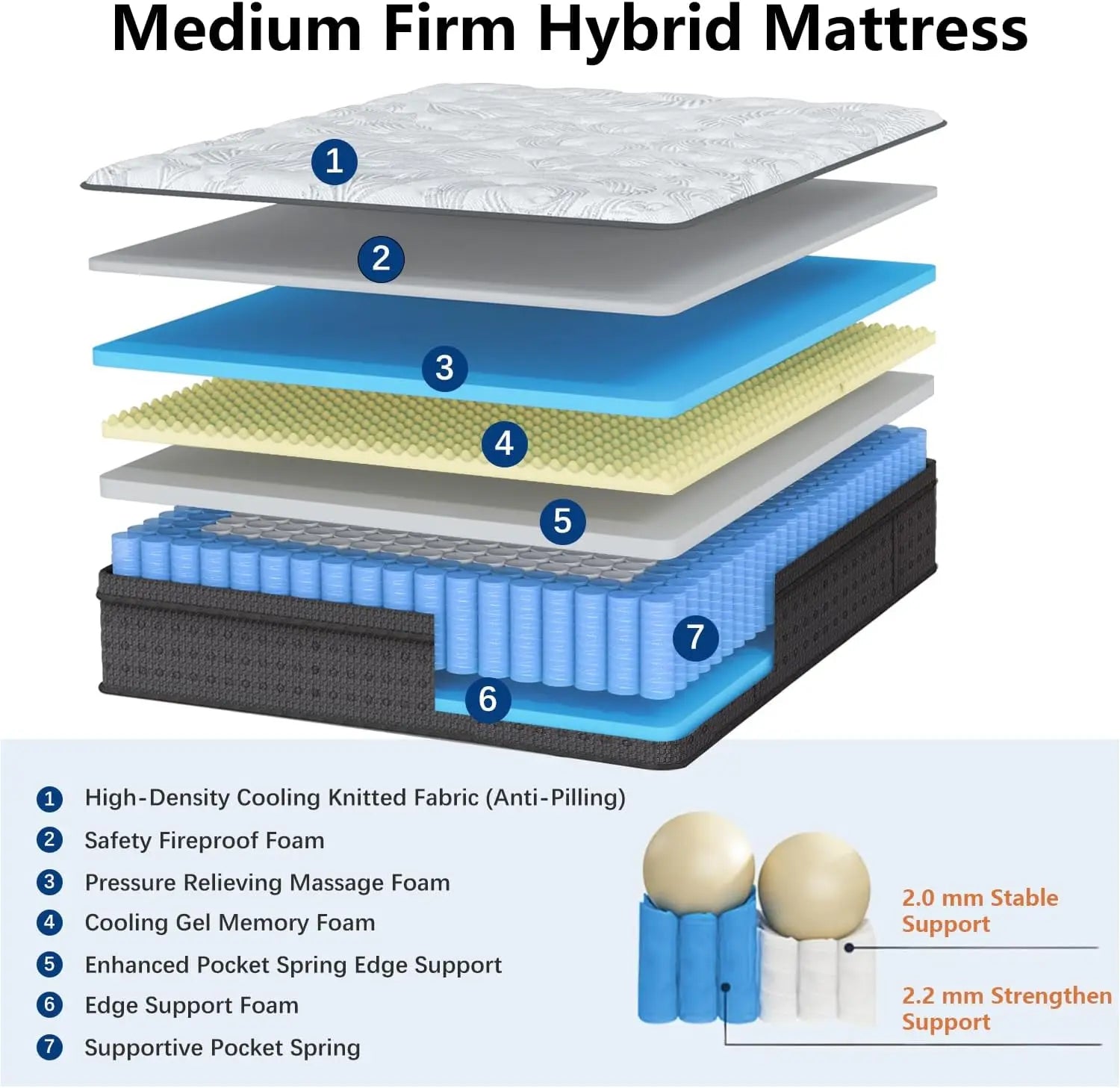 XMSJ Hybrid Mattress In A Box With Gel Memory Foam And Pocketed Coils For Targeted Pressure Relief