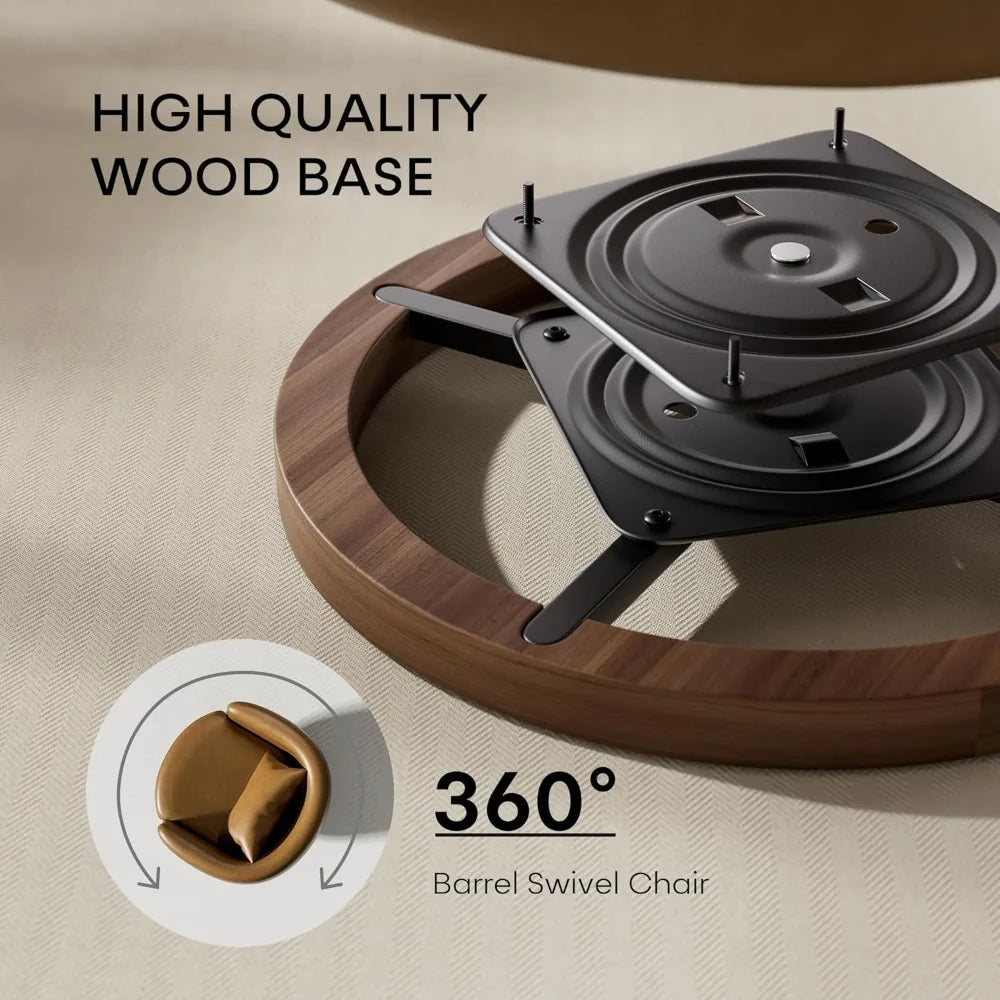 - Barrel-inspired silhouette with a smooth swivel mechanism for effortless seating