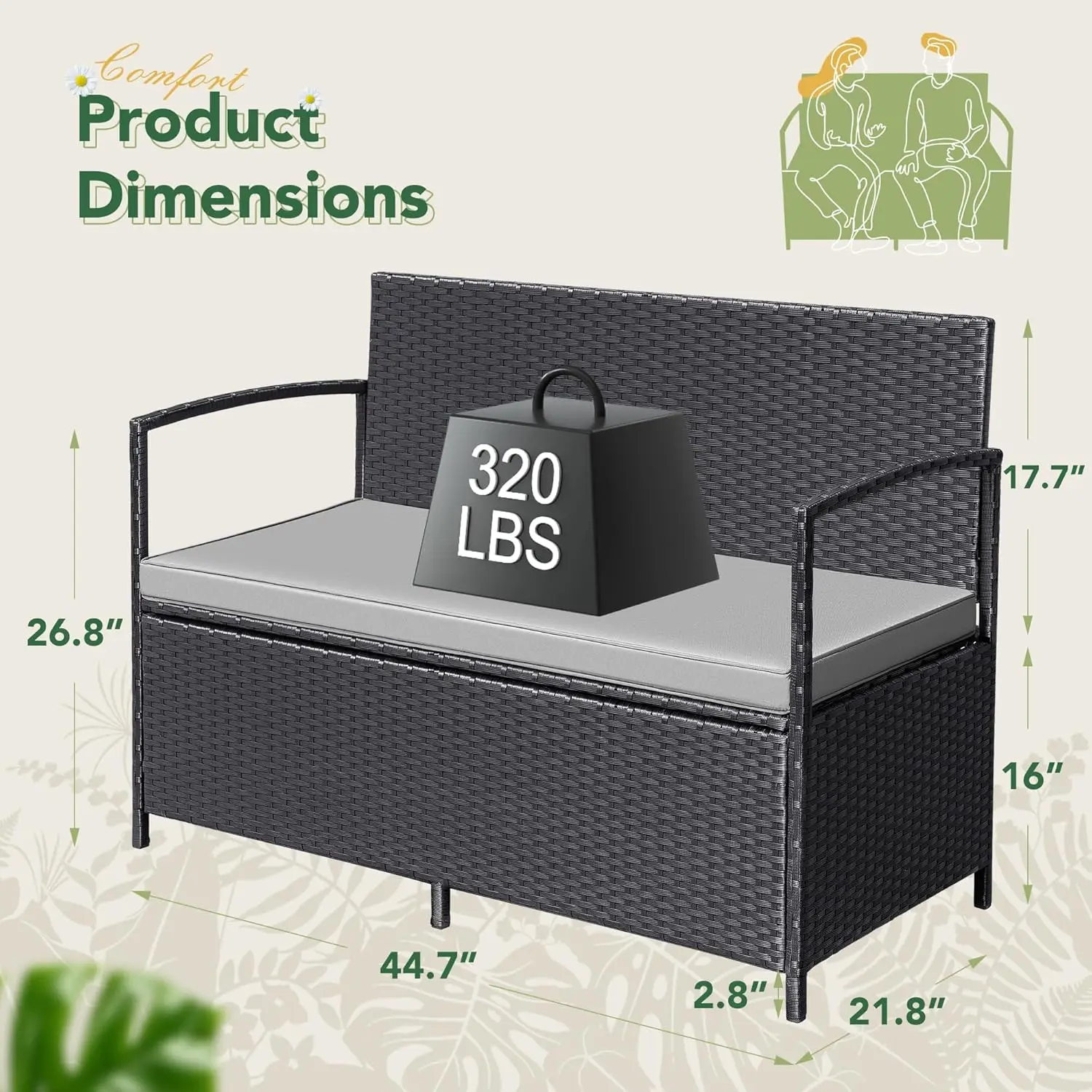 Patio Wicker Loveseat All Weather Rattan Outdoor Conversation Bench With Storage Cushions