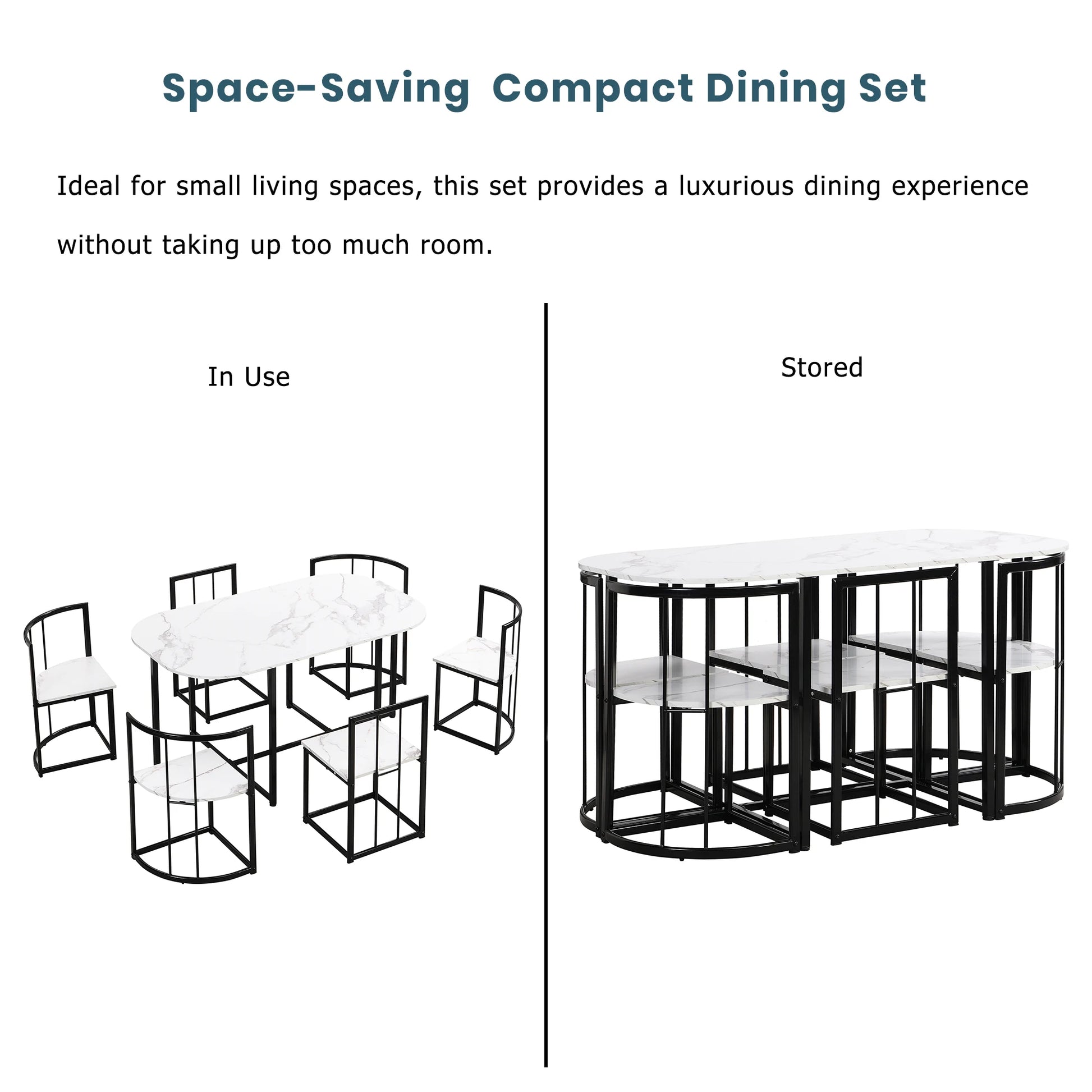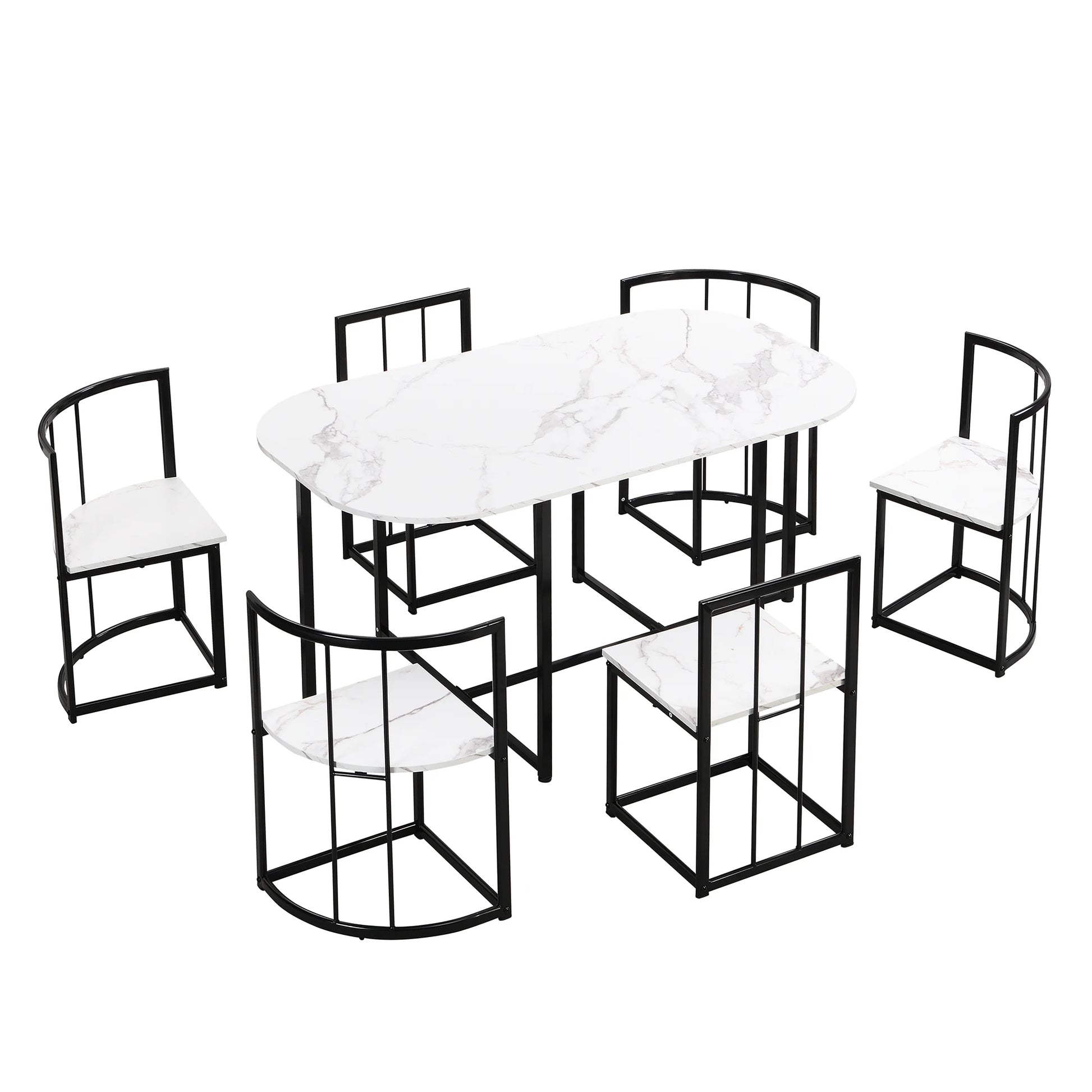 - You can seat six comfortably around a compact 55-inch oval table, ideal for modern kitchens, apartments, or dining nooks without crowding your space.
