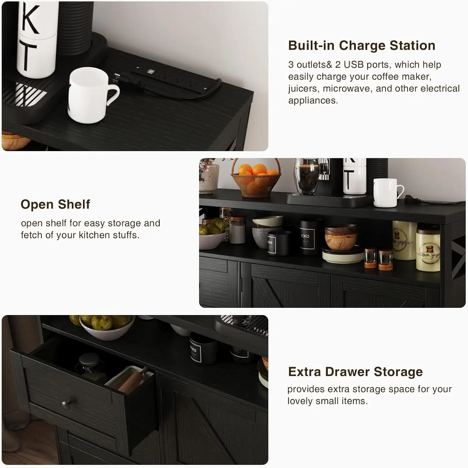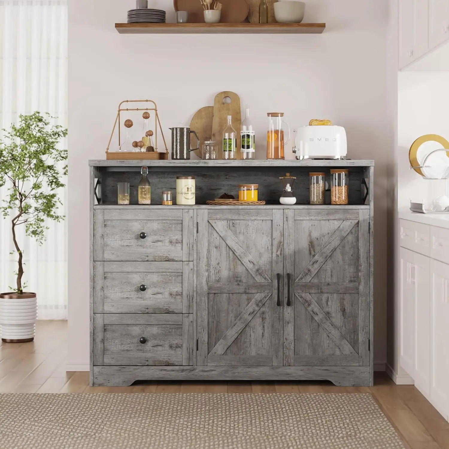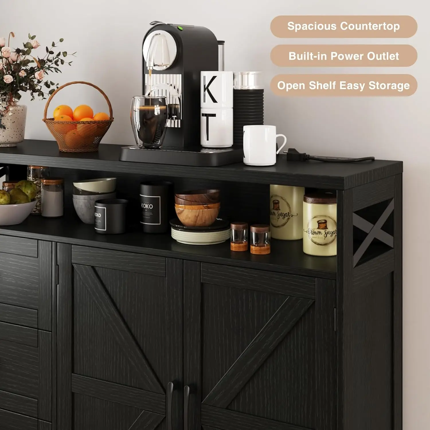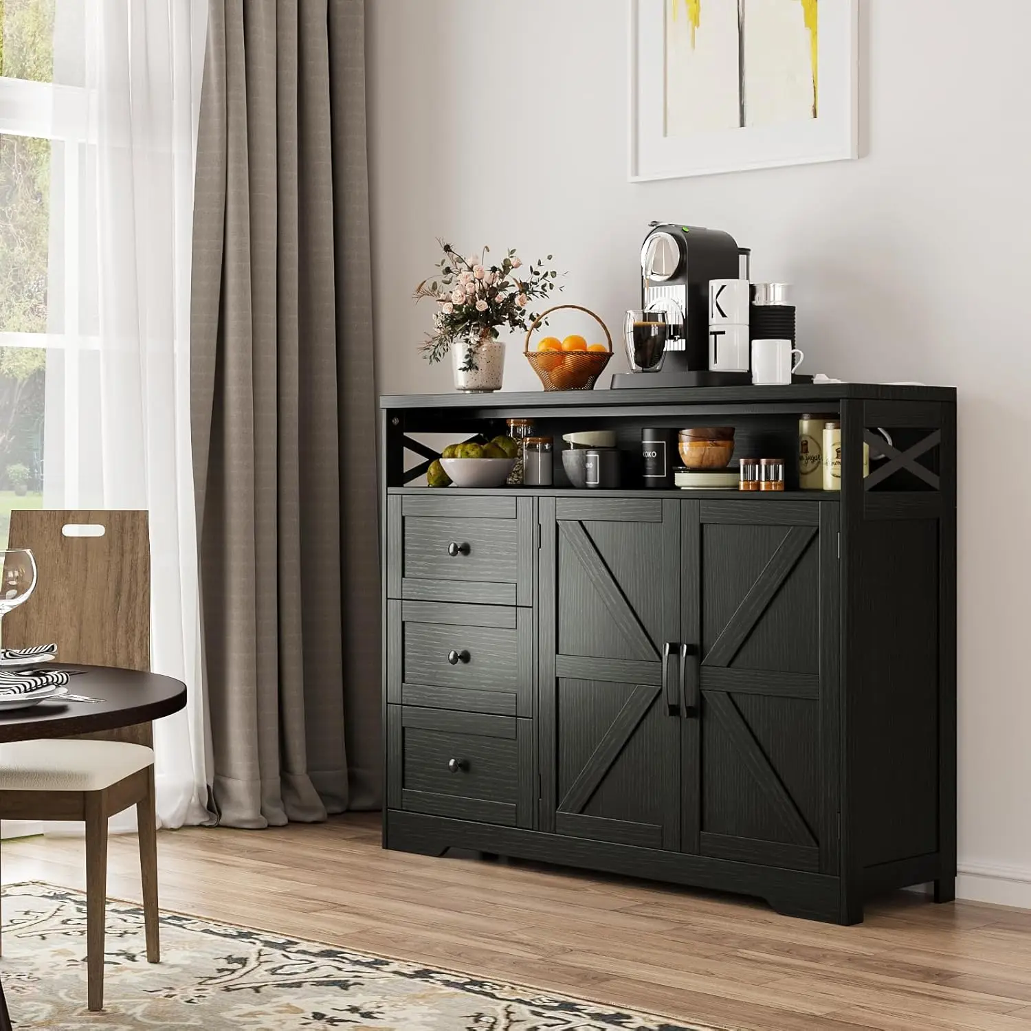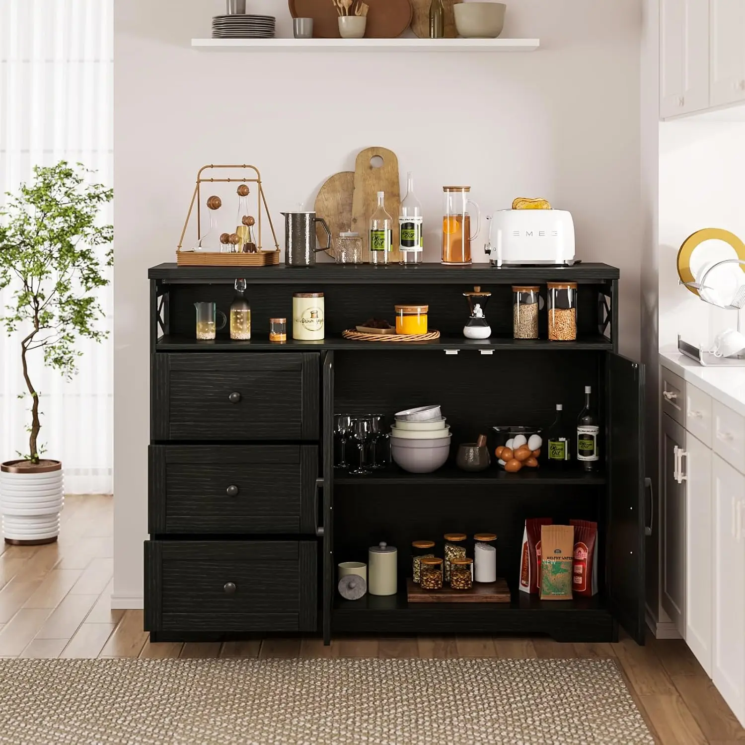 Vabches Buffet Cabinet Wooden Sideboard Drawers And Storage